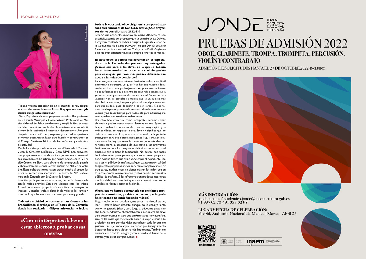I know that there are many people who have dreamed of conducting orchestras since they were little, but in my case it wasn’t like that. What has always motivated me most has been making music in an ensemble. When I finished my horn studies I was quite young – I entered the conservatory at the age of 16 – so I hadn’t looked into doing a master’s degree. I thought: ‘I want to be a more complete musician’, and I decided to study something that would allow me to go deeper into music and that was linked to what I liked the most, which was playing in an orchestra. What suited me was conducting, so I studied the degree, but without visualising that I would be able to dedicate myself to it. When I finished, I started to conduct more and I went as a young conductor to the Joven Orquesta Nacional de España (JONDE); those experiences made me think why I wouldn’t go for it, as it’s something I’m passionate about and I enjoy a lot.